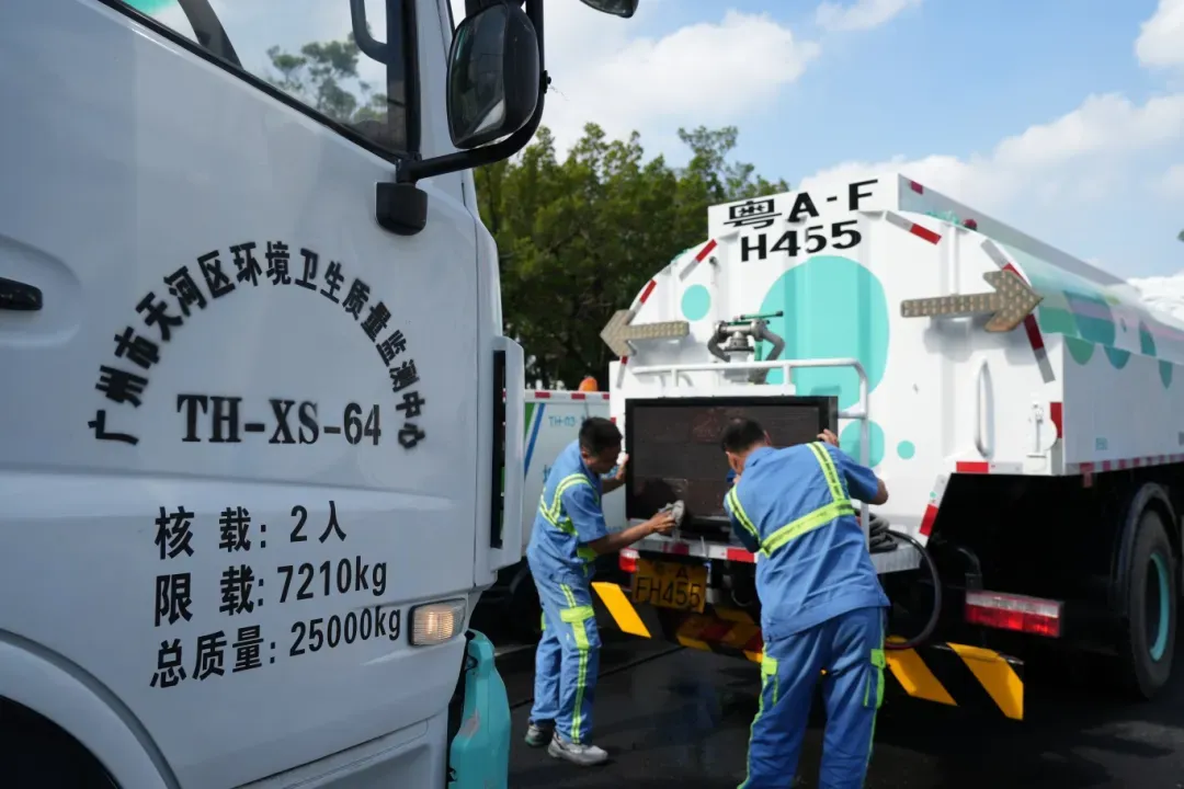 开幕式当天,天河城管构建了严密的全区保障体系。自清晨四点半至深夜十二点,数千名环卫工人穿梭于大街小巷,进行全域精细作业。