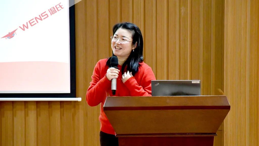 华南农业大学温氏班班主任代表顾婷上台发言,希望同学们珍惜温氏班这一宝贵的学习和实践机会。同时她将与企业班主任一同做好引导、倾听与陪伴,助力华南农业大学的学子书写青春华章,为中国农牧业未来贡献智慧和力量。